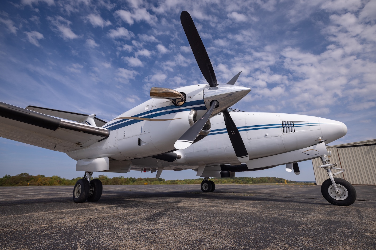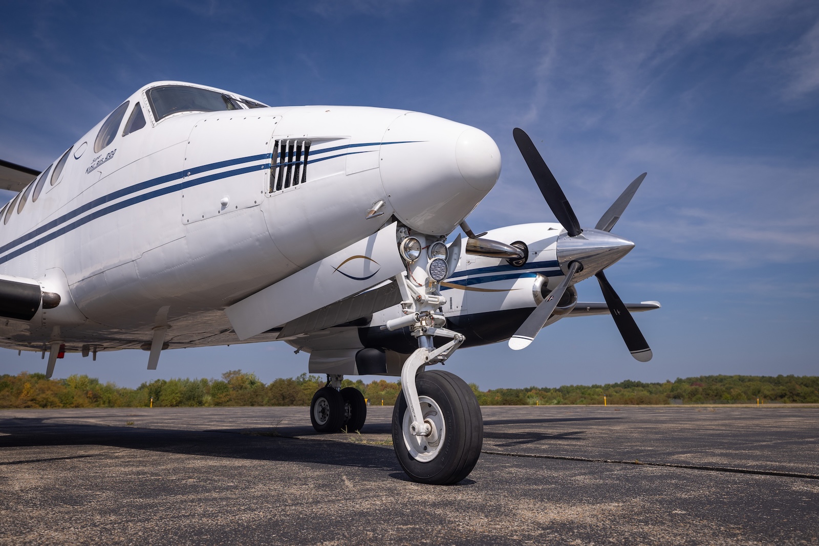 Discover this 1979 Beechcraft King Air 200, N316GC, a meticulously-maintained turboprop that blends classic King Air charm with modern upgrades. Boasting a low total time of 9,485 hours for its age, this aircraft features a fully modernized cockpit with Garmin GTN 750/650 avionics and WAAS/LPV capabilities for navigation and safety. Raisbeck upgrades, including ram air recovery, dual aft strakes, enhanced leading edges, and high float landing gear, elevate performance and efficiency. The freshly refurbished interior seats eight in executive comfort with club seating, wood cabinetry, dual tables, and a belted aft lav, complemented by a striking white exterior with blue and gold trim. Recent phase 1-4 inspections (Feb 2025) and a quiet flight acoustics STC ensure this King Air is in top condition, ready to deliver reliable, luxurious performance.