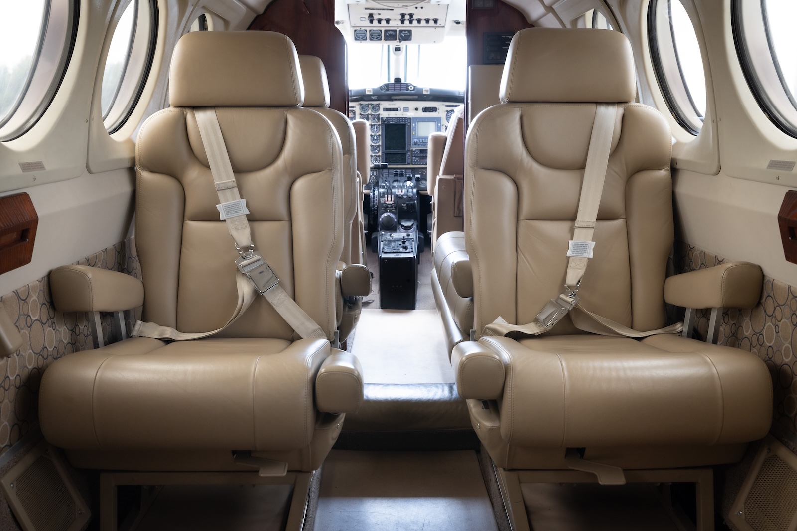 Executive/8 passengers, Air Conditioning, aircraft is in excellent condition, Forward 2-place couch, club seating w/lateral-tracking seats, Left side galley, forward left side upright bar, Wood Cabinetry, Dual tables, Forward & aft dividers, pocket doors, dual USB ports, Belted aft lav