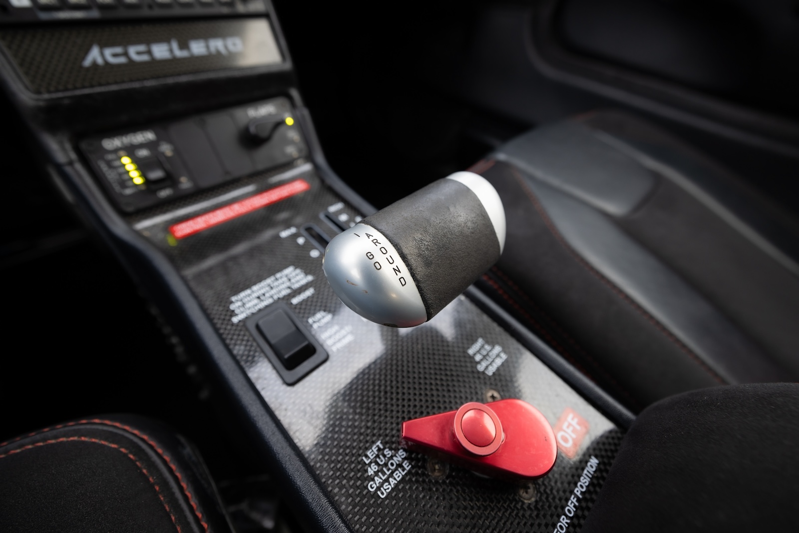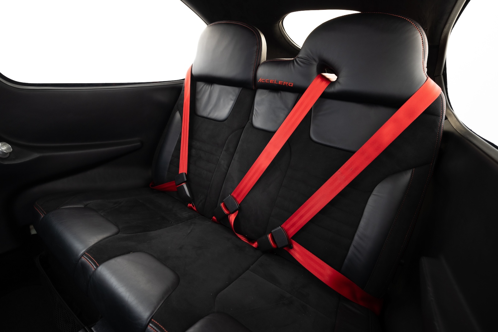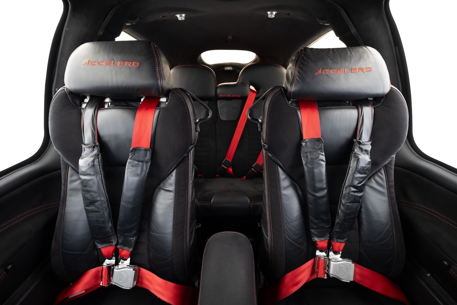 Accelero Custom black leather interior with suede accents and red stitching. Carbon Fiber panel with brushed aluminum vents