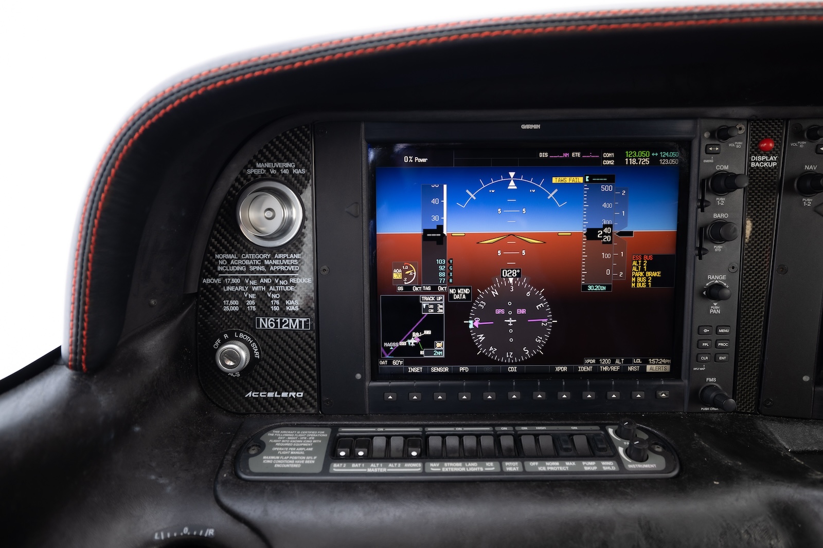 This aircraft is a fully loaded 2015 Generation 5 Accelero Edition SR22T GTS with all options including Midcontinent Digital Backup Gauges, Stormscope, FIKI, Air Conditioning, Global Connect, Tubeless Tires, Berringer brakes, 60/40 Flex Seating, 5 Place Oxygen, ESP, EVS, full Garmin Perspective avionics suite with synthetic vision.
