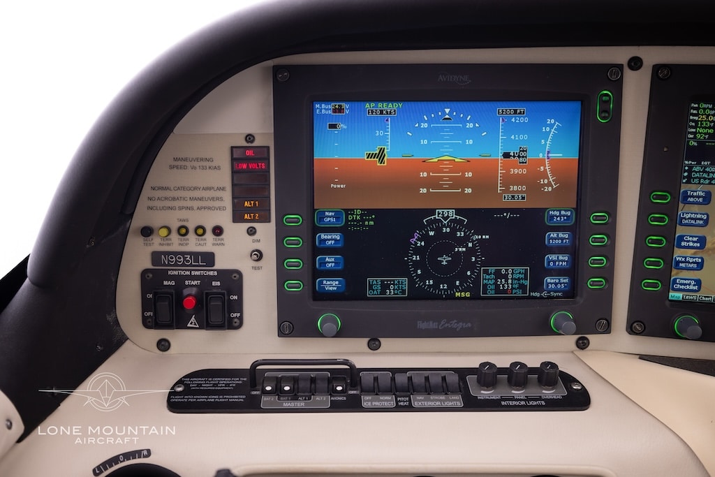 Lone Mountain Aircraft is pleased to offer N993LL, an incredibly well maintained SR22 loaded with GTS features: TKS, Factory Air conditioning, Avidyne PFD/ MFD and more! This Normally Aspirated SR22 comes with dual Garmin 430’s and the capable Avidyne DFC90 Autopilot. Always hangared, and No Damage History.